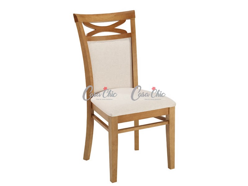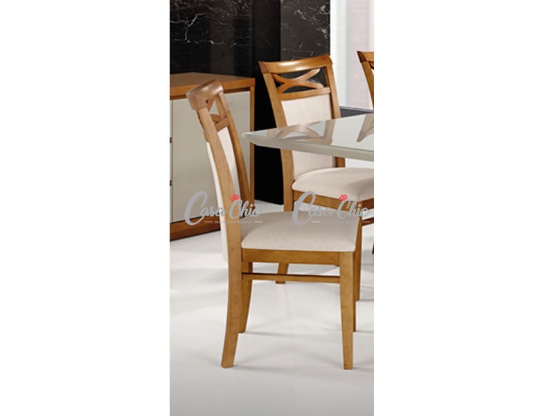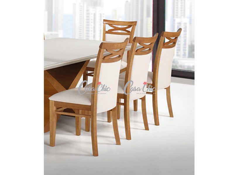Detalhe em madeira na ponta da cadeira com desenho