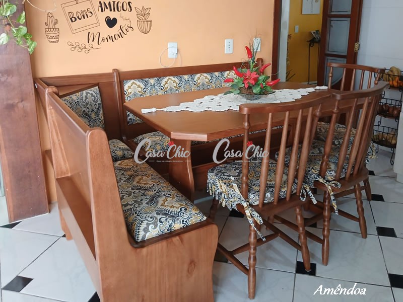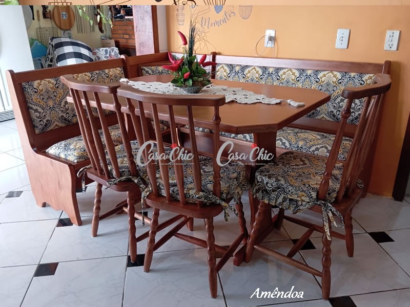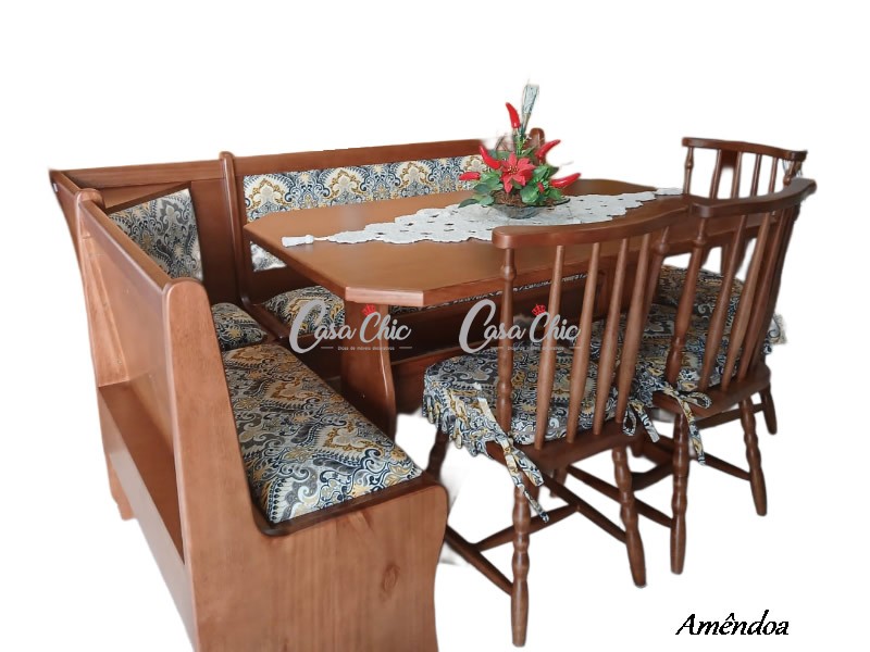 Disponível em 08 cores. O Canto Alemão Casachic Country com 03 Cadeiras é um canto alemão tradicional, perfeito para reunir os amigos e a família para um churrasco ou mesmo jogar cartas, tornando o seu ambiente mais agradável e alegre!