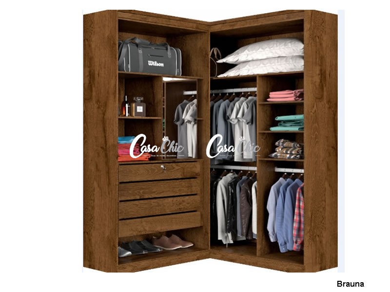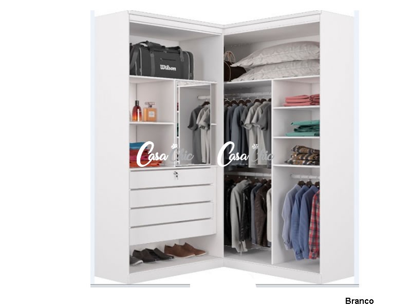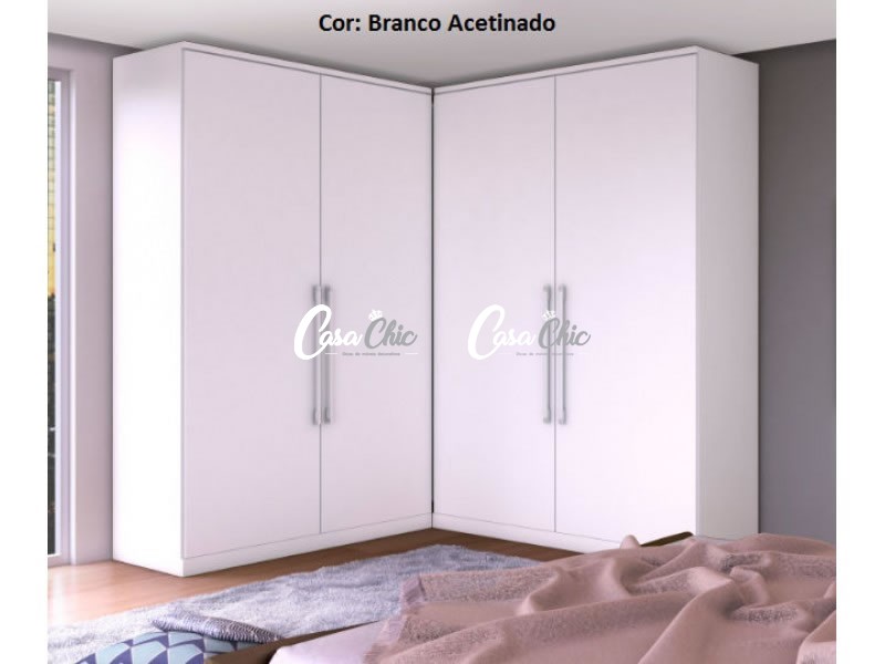 Disponível em 02 cores. O Guarda Roupa Armario Roupeiro Europa Canto Viena 04 Portas foi desenvolvido para atender um público exigente que precisa de espaço interno, divisões bem definidas, beleza, elegância modernidade!