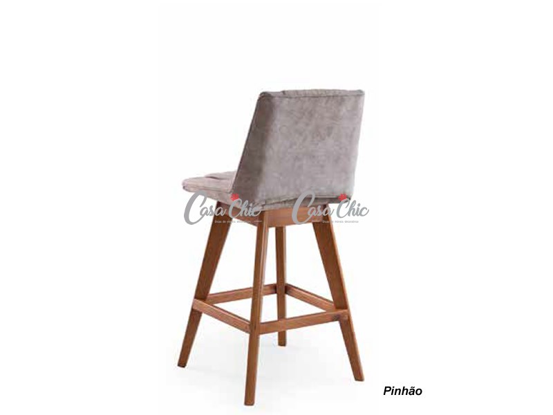 Possui assento e encosto estofado, A banqueta possui detalhes em costura no assento e encosto