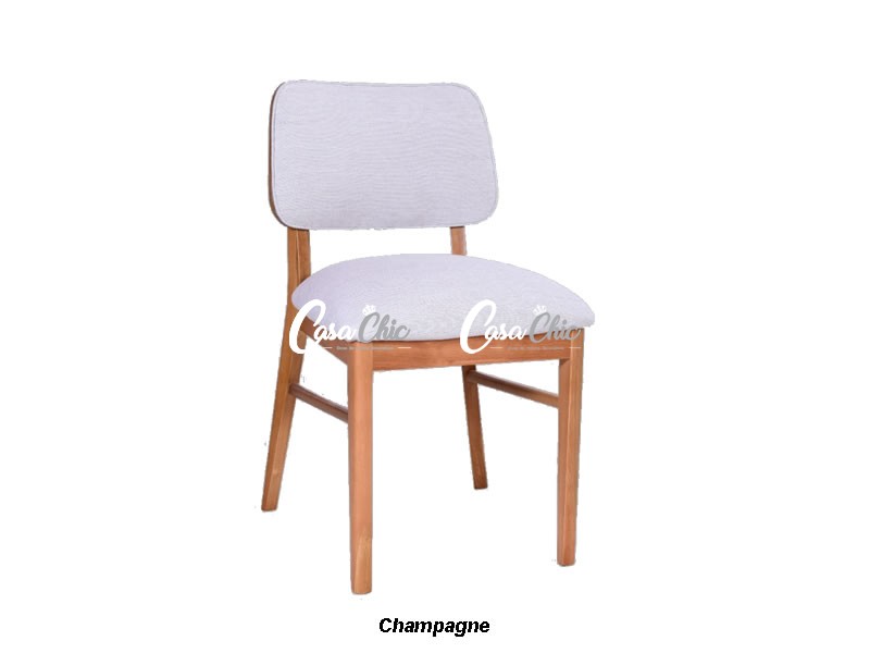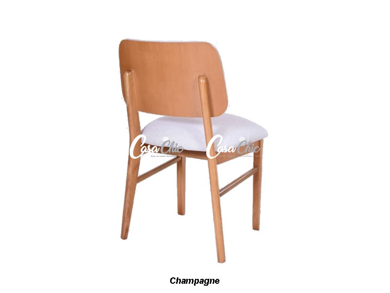 Com detalhes em madeira na parte traseira da cadeira